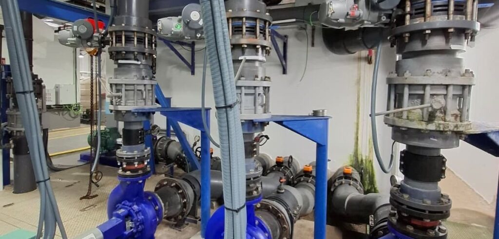 Las válvulas asociadas a esos filtros necesitan abrirse, cerrarse y regularse de forma precisa y fiable. Hacer eso manualmente en una instalación de esta envergadura no es viable: los ciclos de operación son continuos, las condiciones ambientales son exigentes (humedad constante, ambiente salino) y cualquier fallo o retraso en la maniobra puede tener consecuencias directas sobre la calidad del agua y, en último término, sobre los animales.
